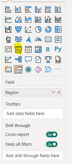 - Drag the "Region" field into the slicer.